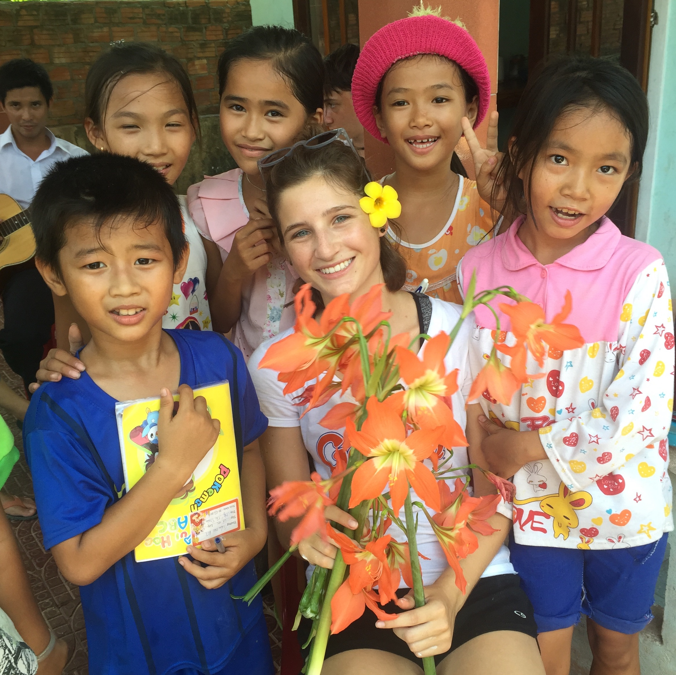 Nick, Alex, Sam D., Jessica, Ali, and Hazel with all their students that they teach everyday!