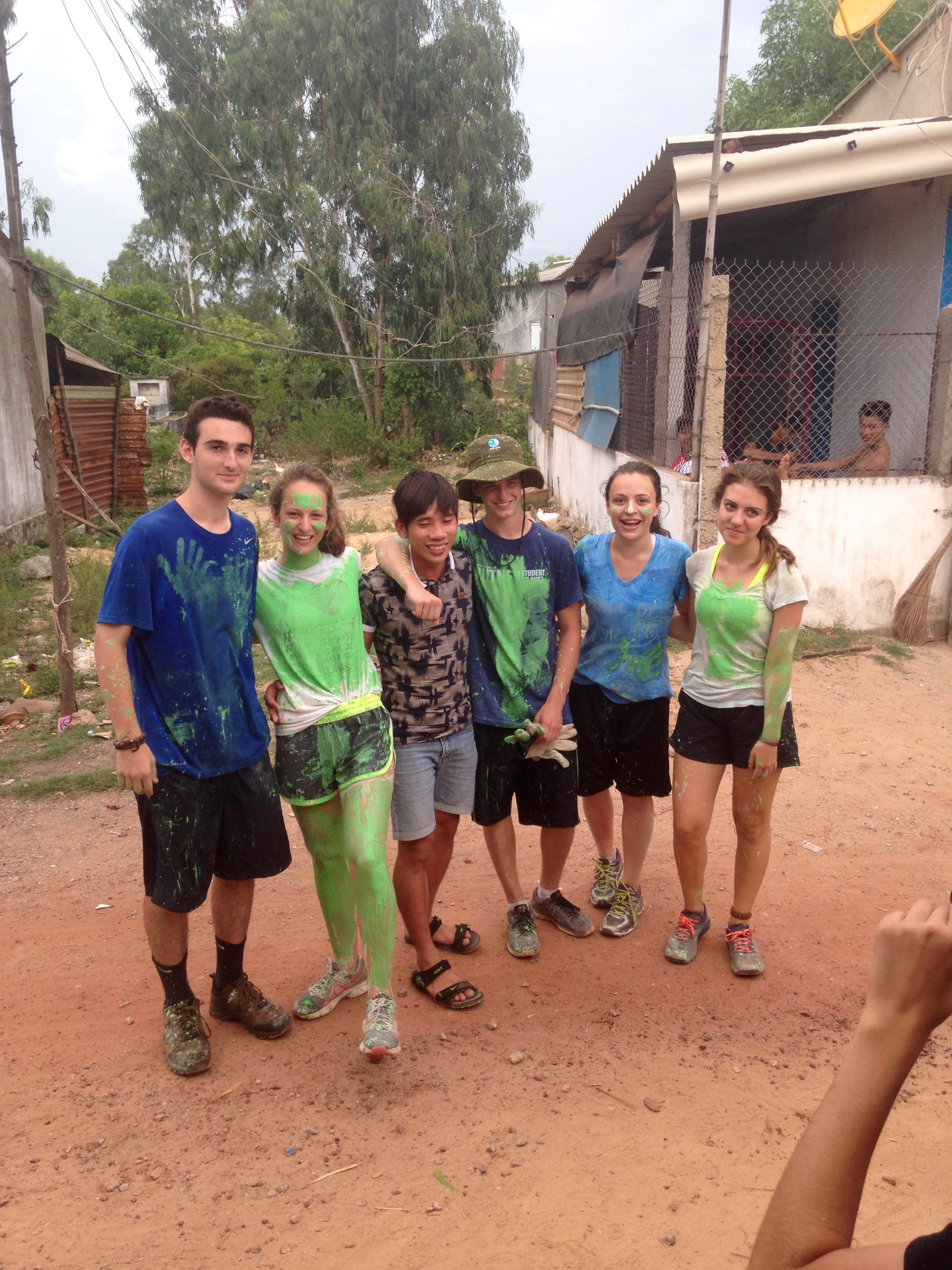 Meanwhile at worksite #2, there might have been a little bit of extra painting going on! Sam L., Noe, Connor, Rachel, and Annabel pose with our good friend, John, from the Youth Union!