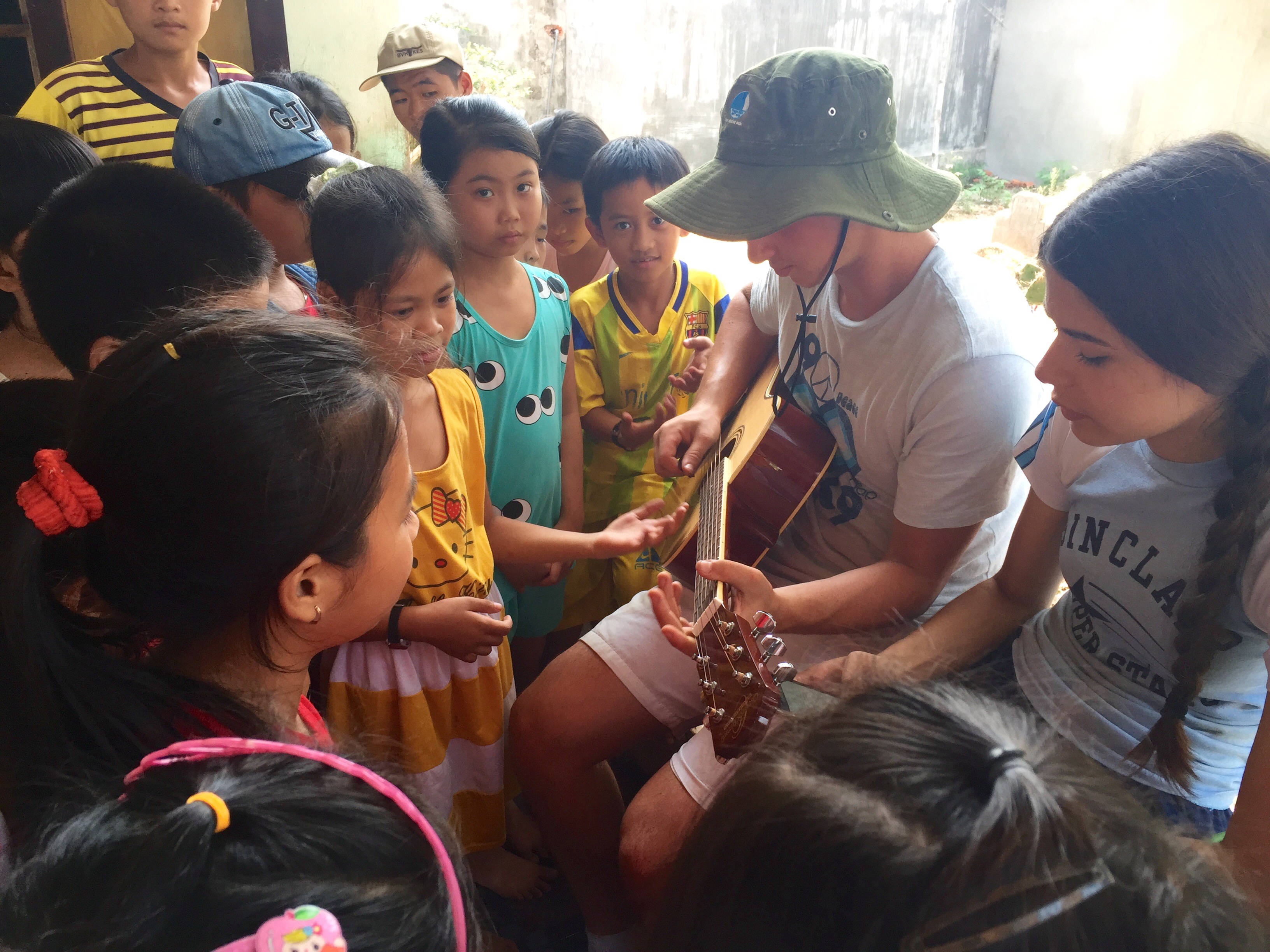 Jamie and Mila showing their skills with the local children at worksite #1!